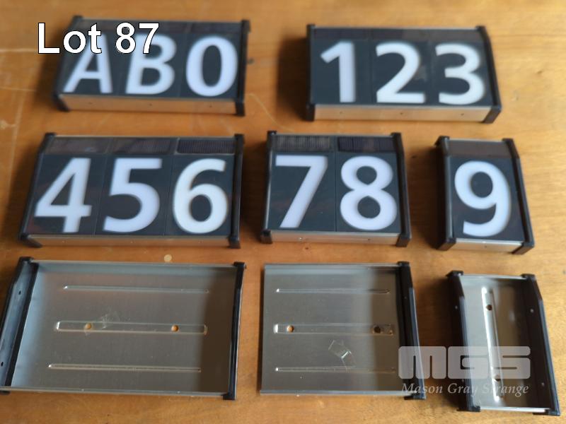 TRIO "SOLAR DIGITS" SOLAR HOUSE NUMBER SYSTEM. COMPRISING AS FOLLOWS. SOLAR HOUSE LETTER "A" - 1.5 X CARTONS OF 80 PIECES EACH. SOLAR HOUSE LETTER "B" - 4 X CARTONS OF 80 PIECES EACH. SOLAR HOUSE NUMBER "0" - 1.75 X CARTONS OF 80 PIECES EACH. SOLAR HOUSE NUMBER "1" - 1 X PART CARTON - HALF FULL. SOLAR HOUSE NUMBER "2" - 1 X CARTON OF 80 PIECES. SOLAR HOUSE NUMBER "3" - NONE. SOLAR HOUSE NUMBER "4" - NONE. SOLAR HOUSE NUMBER "5" - NONE. SOLAR HOUSE NUMBER "6" - 1.5 X CARTONS OF 80 PIECES EACH. SOLAR HOUSE NUMBER "7" - 1 X CARTON OF 80 PIECES. SOLAR HOUSE NUMBER "8" - 2 X CARTONS OF 80 PIECES EACH. SOLAR HOUSE NUMBER "9" - 2 X CARTONS OF 80 PIECES EACH + 3 X PACKS OF 5. SINGLE DIGIT WALL MOUNTS - 3 X CARTONS OF 40 PIECES EACH. DOUBLE DIGIT WALL MOUNTS - 4 X CARTONS OF 40 PIECES EACH. TRIPLE DIGIT WALL MOUNTS - 2 X PART PACKS OF 10 - 17 PIECES.