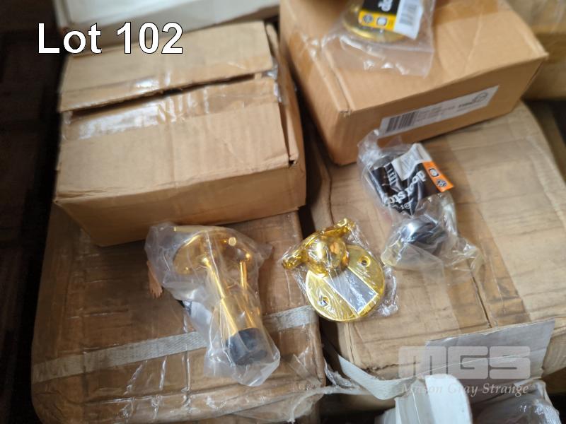 TRIO CUSHIONED DOOR STOP, BRASS PLATED (R12-DSM027EB). 500 PIECES APPROX. 4 X BOXES MIXED DOOR STOPS.