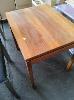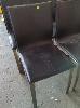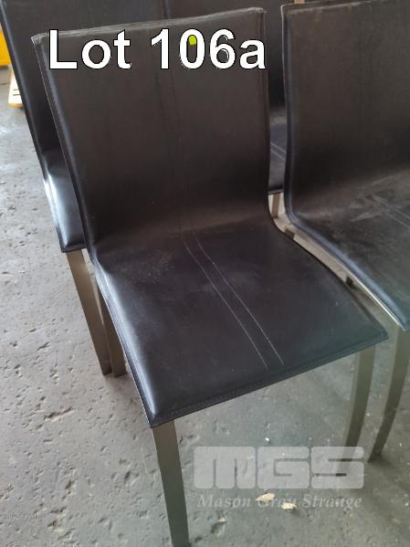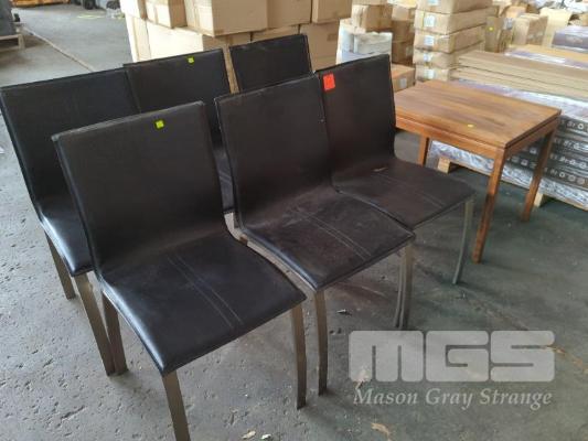 6 X TOP-COATED LEATHER MID-BACK DINING CHAIRS. BLACK WITH CHROME STEEL LEGS. WOODGRAIN SIDE TABLE.