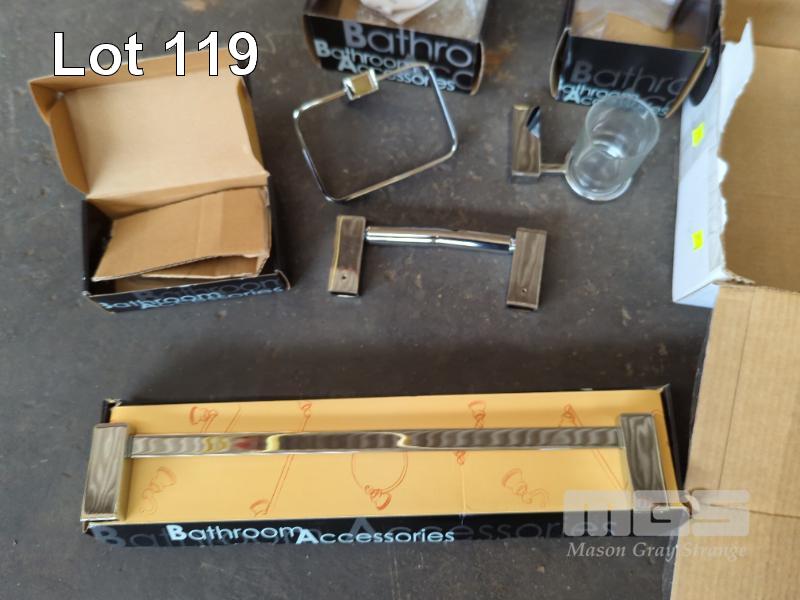 BATHROOM SETS INCLUDING SOAP DISHES, TOILET ROLL HOLDERS, TOWEL RAILS, ETC, 4 x BOXES