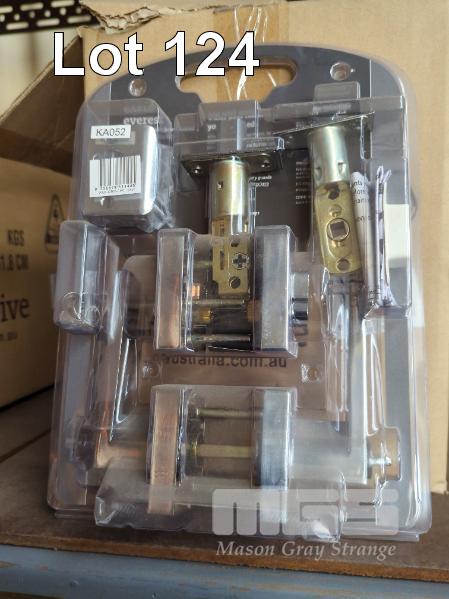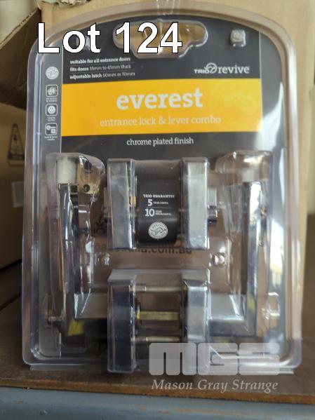 TRIO EVEREST ENTRANCE LOCK & LEVER COMBO SETS. CHROME PLATED. CLAMSHELL PACKED (WQL/QB65CPC). 42 PACKS APPROX.