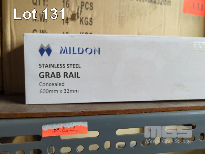 MILDON KNURLED STAINLESS STEEL GRAB RAILS. CONCEALED MOUNT - 600 X 32 MM. INDIVIDUALLY BOX PACKED (1808CR). 48 PIECES APPROX.