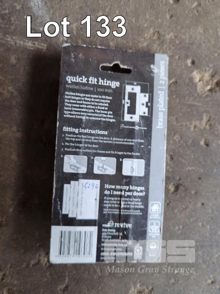 DOOR HINGES, WARLAN HIRLINE QUICK FIT IN BLISTER PACKS, 2 HINGES PER PACK - 100 x 65 x 2.0 MM, BRASS PLATED. 150 PACKS APPROX.