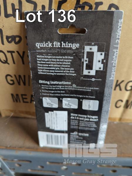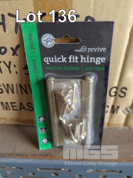 DOOR HINGES, WARLAN HIRLINE QUICK FIT IN BLISTER PACKS, 2 HINGES PER PACK - 100 x 65 x 2.0 MM, BRASS PLATED. 200 PACKS APPROX.