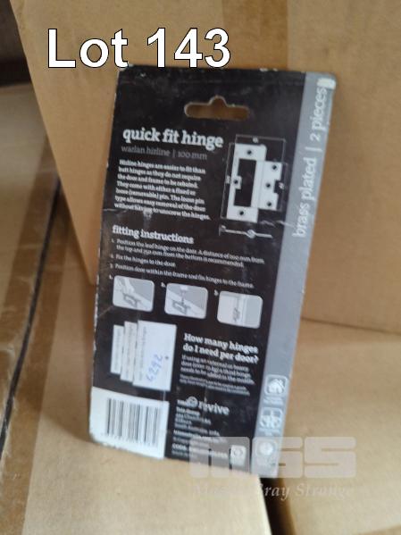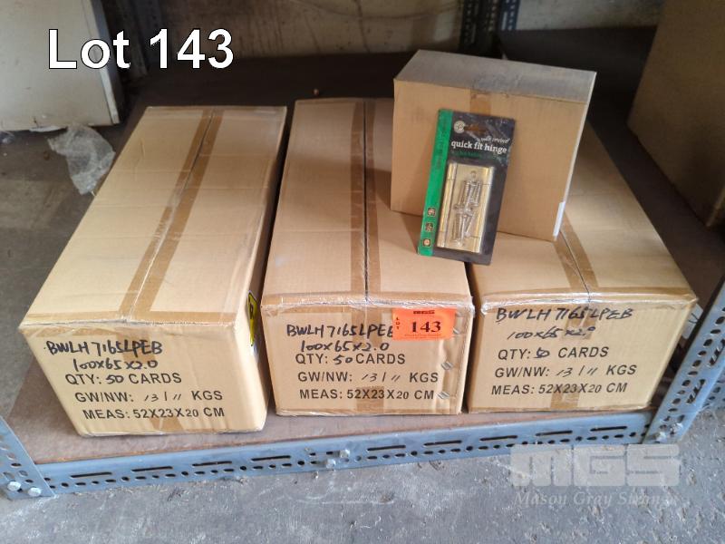 DOOR HINGES, WARLAN HIRLINE QUICK FIT IN BLISTER PACKS, 2 HINGES PER PACK - 100 x 65 x 2.0 MM, BRASS PLATED. 150 PACKS APPROX.