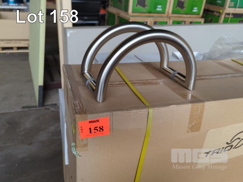 QUANTITY OF TRIO ARCHITECTURAL BACK-TO-BACK DOOR HANDLE PAIRS IN SATIN CHROME. 50 PAIRS APPROX. (1 X PALLET)
