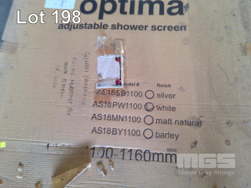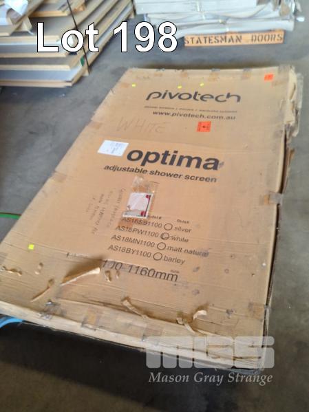 PIVOTECH ADJUSTABLE SHOWER SCREEN, WHITE, 1850 x 1100 x 1160mm, NEW OLD STOCK IN BOX