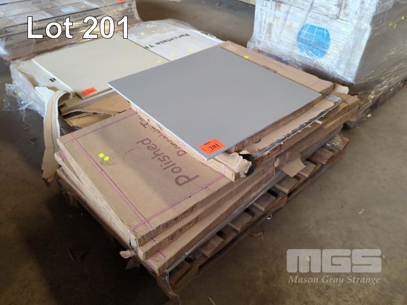 PORCELAIN TILES, 600 x 600mm GREY, 9 x BOXES, (4/BOX) + ASSORTED LARGE TILES 1 x PALLET
