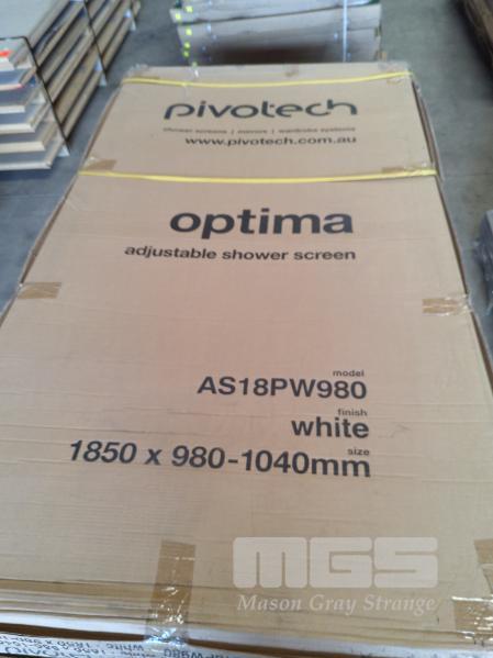 PIVOTECH ADJUSTABLE SHOWER SCREEN, WHITE, 1850 x 980 x 1040mm, NEW OLD STOCK IN BOX