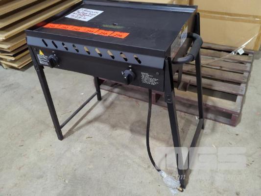PORTABLE 2-BURNER SOLID PLATE GAS BBQ WITH FOLDING LEGS. NEW IN BOX. RRP $199