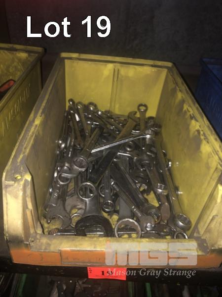 35 (APPROX) x ASSORTED SPANNERS, SIDCHROME, KINGSCRAFT, SUPATOOL, RING & OPEN END, 1 x TUB