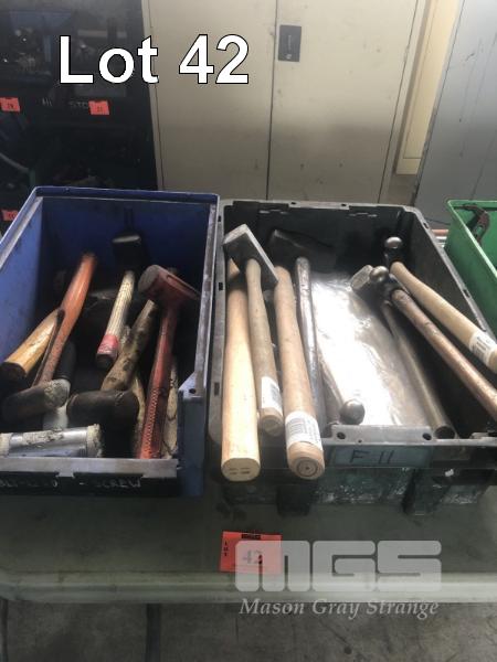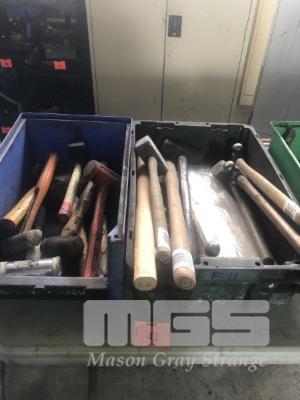 15 (APPROX) x ENGINEERS HAMMERS, HANDLES & HAMMER HEADS, 2 x TUBS