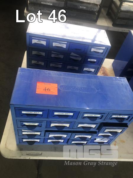 2 x BLUE 16 DRAWER KINCROME SETS & CONTENTS, BOLTS, VALVE PLUGS, SCREWS