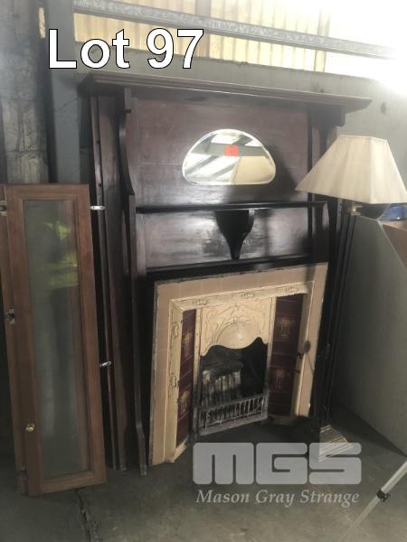 OLD SCHOOL OPEN FIREPLACE & TIMBER FIRE SURROUND, PEDESTAL LAMP & PAIR TIMBER GLASS DOORS