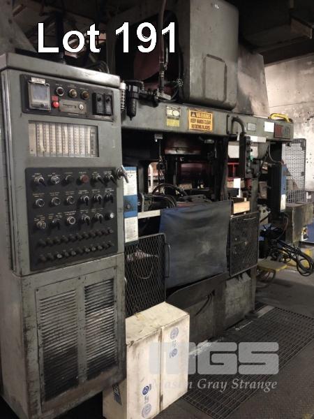 HUNTER AUTOMATED MACHINERY CORPORATION FLASKLESS MOULDING MACHINE, PRODUCES 14 x 19 x 10 INCH MOULD, MODEL: HMP10C, SERIAL: 82P914, 415v, 180 MOULDS PER HOUR AUSTVEYORS, HOPPER & CONVEYOR BELT SYSTEM, HOPPER: 2100mm (L) 450mm (W), 1700mm (H) CONVEYOR: 3000mm (L) 550mm (W) (NOTE: INSPECTION REQUIRED, UNIT IS ON MEZZANINE)
