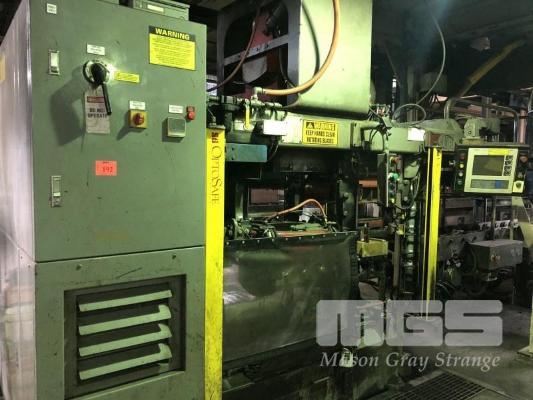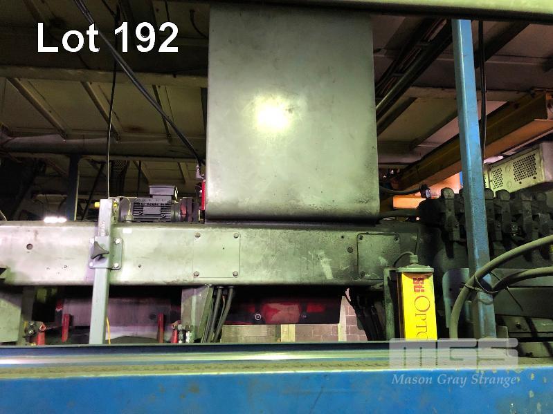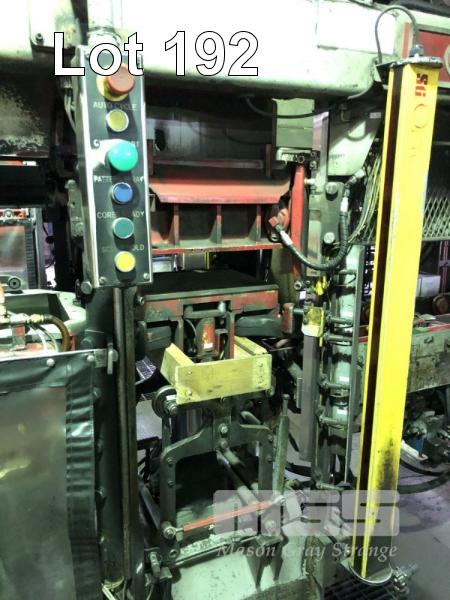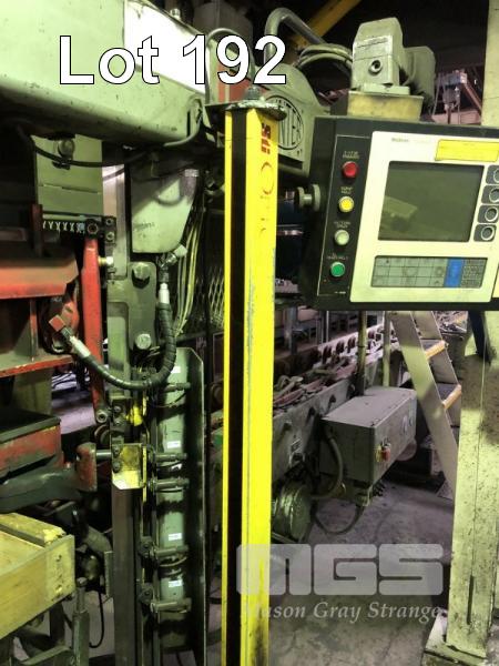 HUNTER AUTOMATED MACHINERY CORPORATION FLASKLESS MOULDING MACHINE, PRODUCES 14 x 19 x 10 INCH MOULD, MODEL: HMP10E, SERIAL: 95MPE1092, 415v WITH OPTOSAFE RED EYE SAFETY BEAMS, PRODUCES 180 MOULDS PER HOUR PLUS STAINLESS STEEL HOPPER SYSTEM WITH FEED CONVEYOR, 1850mm (L) 1230mm (W) 1700mm (H), BELT: 3200 x 450mm, (NOTE: INSPECTION REQUIRED, UNIT IS ON MEZZANINE)