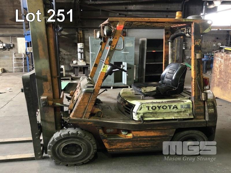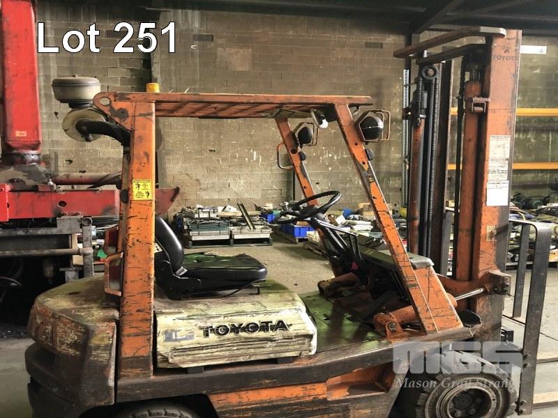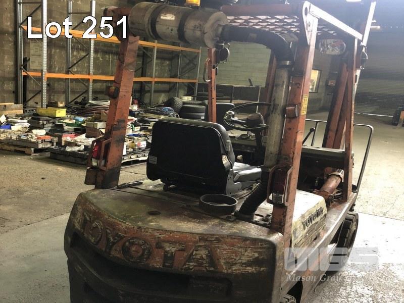 1984 TOYOTA 02-3FD15 1.5 TONNE FORKLIFT REG: (SA) VIN: FD18-44516 DISEEL, 2300mm MAST HEIGHT, REGULARLY SERVICED, SERVICE HISTORY AVAILABLE ON REQUEST, WITH PARTS CATALOGUE (WITH PAPERS, WITH OWNER'S MANUAL, NO SERVICE BOOKS)