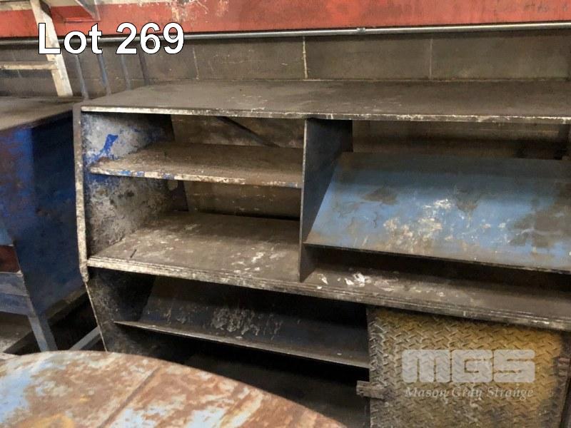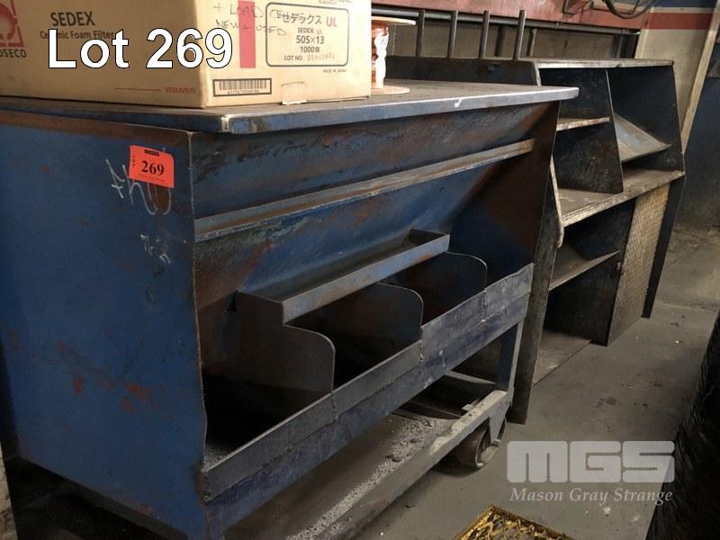 SMALL MOBILE HOPPER BIN, 1250 x 630 x 1350mm (H) WITH STEEL STOCK RACK, MULTI SHELF, 1300 x 600 x 1400mm