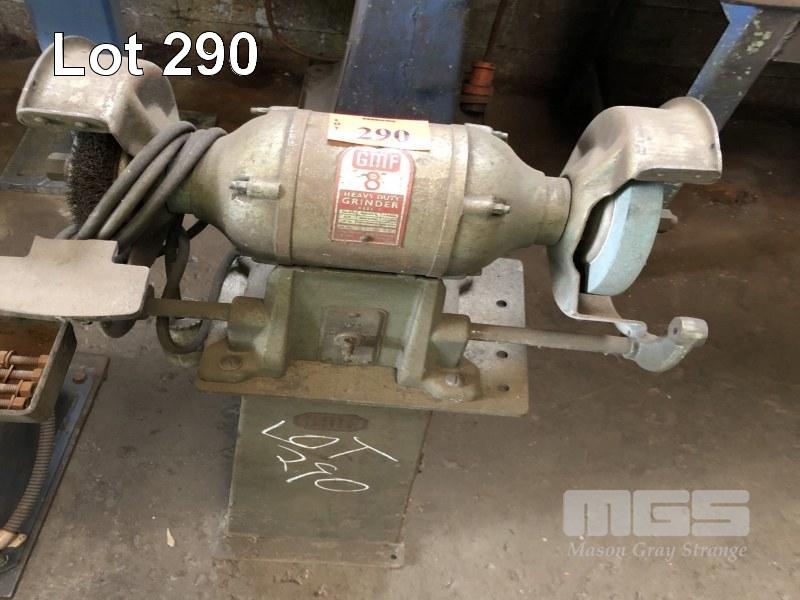 GMF 8" DOUBLE ENDED BENCH GRINDER 415v ON PEDASTEL
