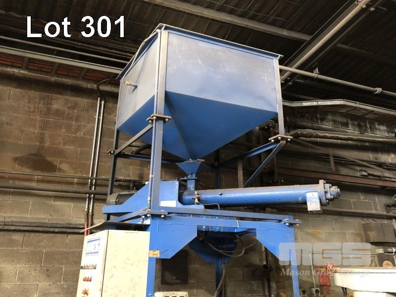 WES CM4000 RIBBON MIXER & 2 TPH PNEUMATIC SAND TRANSPORTER ON STAND WITH OVERHEAD SAND HOPPER & PLC CONTROLS (NOTE LOT IN 2 LOCATIONS IN FACTORY)