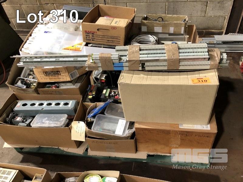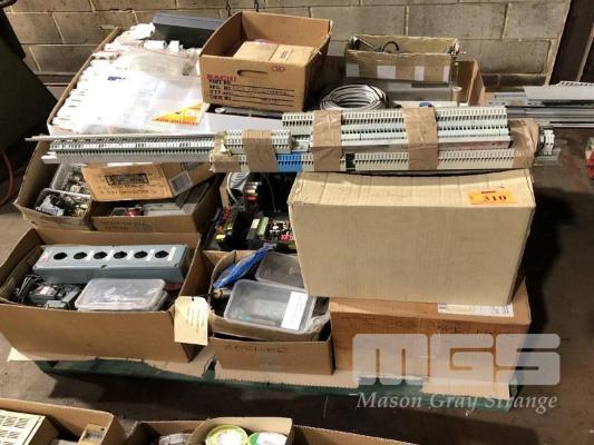 PALLET OF ELECTRICAL COMPONENTS, CONTACTOR BOXES, TERMINAL BLOCKS, CONNECTORS, RELAYS ETC.