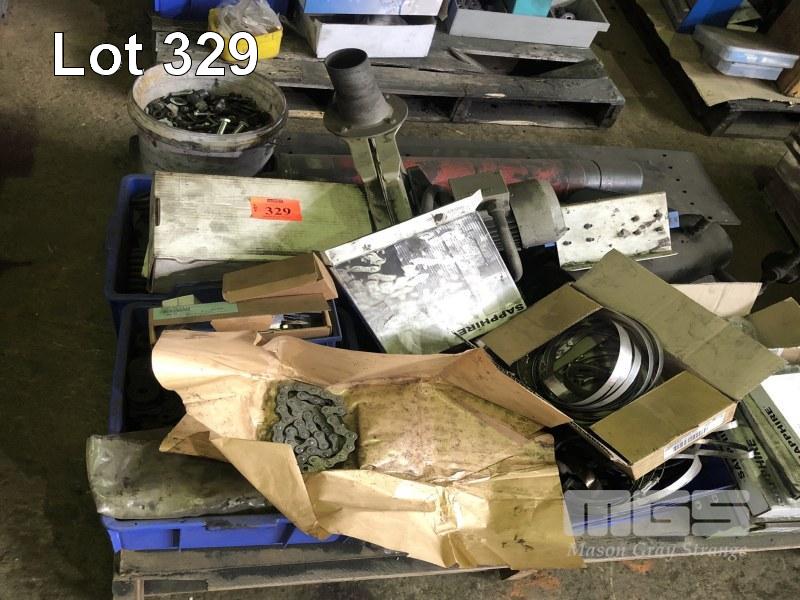 2 x PALLETS OF ASSORTED HARDWARE, STAINLESS STEEL HOSE CLAMPS, DRIVE CHAIN, BLOWER, FILTERS ETC. PLUS COLLECTION OF DUST COLLECTOR MULTI-CHANNEL PULSE TIMERS, MAGNEHELIC AND MAGNASENSE GAUGES.