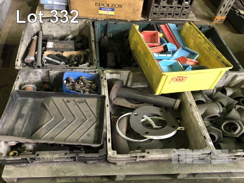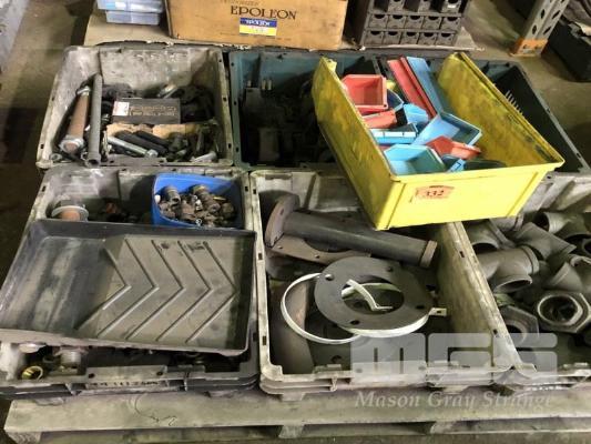 2 x PALLETS ASSORTED HARDWARE, PIPE FITTINGS, PLASTIC TRAYS, SCREEN, VALVES, FILTERS, PARTS DRAWER ETC.