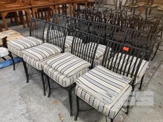 8 x OUTDOOR CHAIRS, BLACK STEEL FRAME WITH CUSHIONS