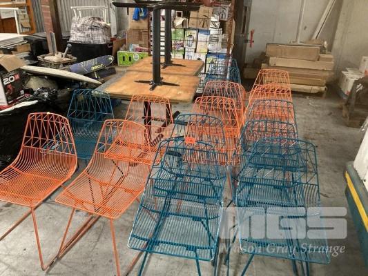 4 x OUTDOOR CAFE TABLES, EACH 80 x 80cm & 16 x BEND CHAIRS, ORANGE & GREEN