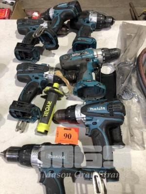 7 x MAKITA CORDLESS DRILLS, 18v ALL FAULTS, NO BATTERIES