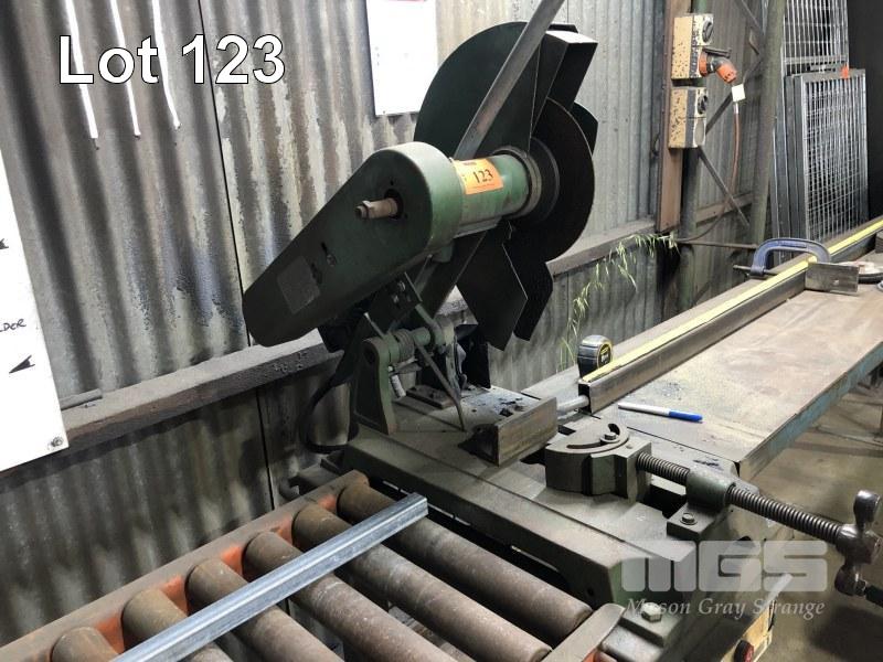 FRICTION CUTOFF SAW, BELT DRIVE, 16" WITH QUICK ACTION CLAMP & ROLLER IN FEED & OUTFEED TABLE