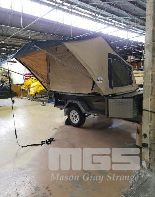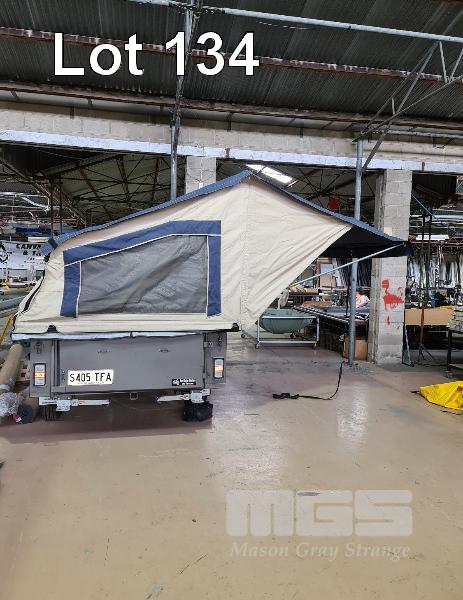 SAR MAJOR ADVENTURER TOURER OFF ROAD CAMPER TRAILER, REGO: S405TFA, VIN: 6T9T2000SH027V005, DOM: 2017, MODEL: 7 x 4 14 INCH WHEELS, OFFROAD SUSPENSION, WATER TANK FITTED INCLUDES: 3 x CAMPER WALLS, CAMPER FLOOR, POLE BAG, PEG BAG (39 PEGS), GUY ROPE BAG (5 ROPES), WASH TUB, MATTRESS PROTECTOR,FIRE EXTINGUISHER, STEP LADDER, COUPLING LOCK, HAMMER, SPARE WHEEL, STOVE, TUB, FUEL JERRY CAN, WATER JERRY CAN RRP: $12,573
