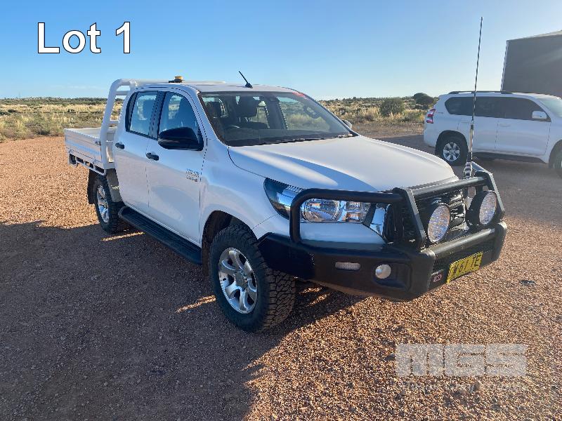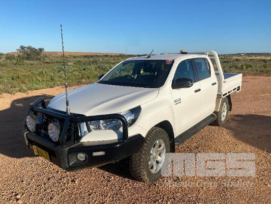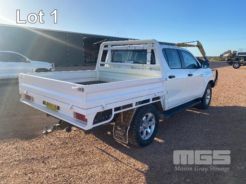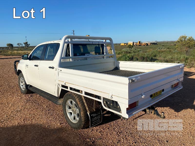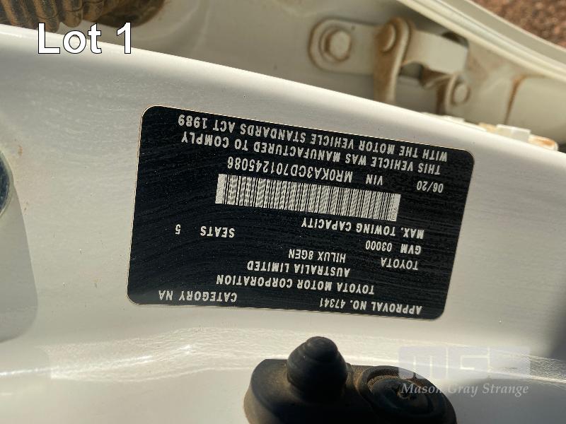 2020 TOYOTA HILUX 8 GEN SR DUAL CAB UTILITY 4x4 VIN: MR0KA3CD701245086 2.8 LITRE, 6 SPEED MANUAL TRANSMISSION, DIESEL, WHITE DUCO, 4x4 AIR CON, ALLOY WHEELS, BLUETOOTH, BULL BAR, SPOT LIGHTS, UHF RADIO MARKRAFT STEEL DROP SIDE TRAY BODY & TOW PACK (WITH PAPERS, WITH OWNER'S MANUAL, WITH SERVICE BOOKS)
