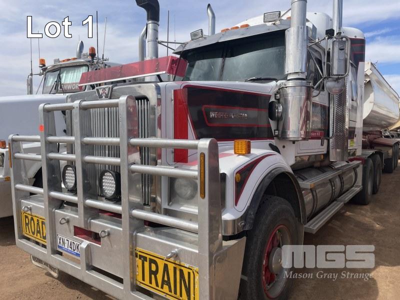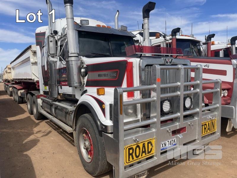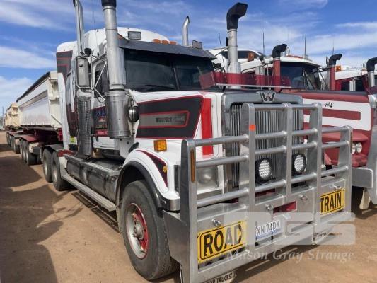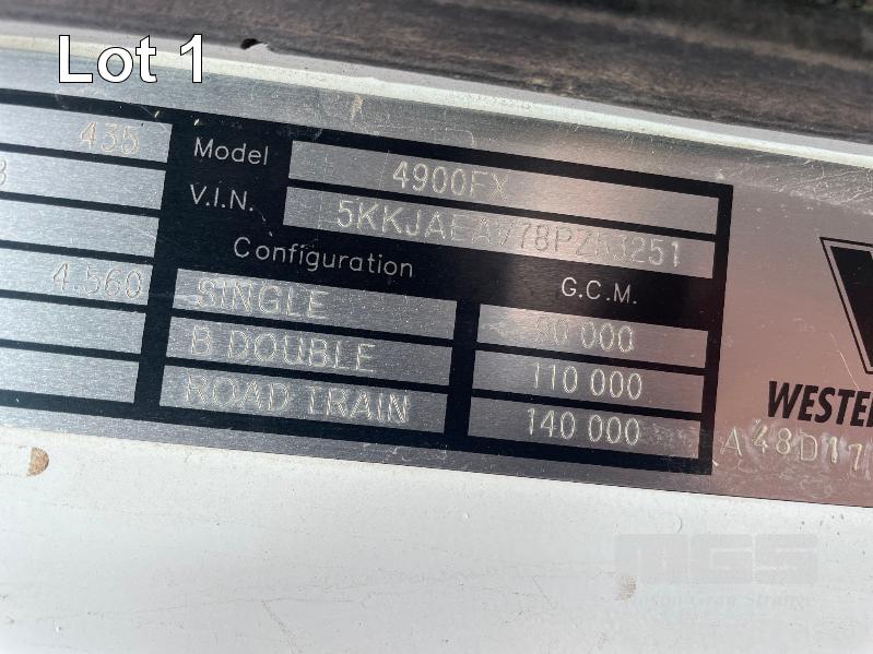 2007 WESTERN STAR PRIME MOVER REG: XM74DK HOURS: 26,932 VIN: 5KKJAEAV78PZ53251 CAT C 15, 18 SPEED MANUAL, TRIPLE SIDE TIPPER HYDRAULICS, 50MM FIXED TURNTABLE 6 ROD SUSPENSION, 140 TONNE RATED, SIDE TIPPER HYDRAULICS