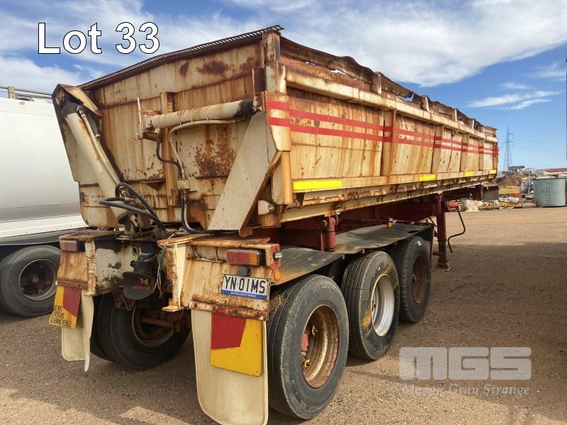TRISTAR SIDE TIPPER TRAILER REG: YN 01 MS SPRING SUSPENSION, ID PLATE REMOVED UNIT NO: 348 SPIDER HUBS RING FEEDER 50MM KING PIN AS IS