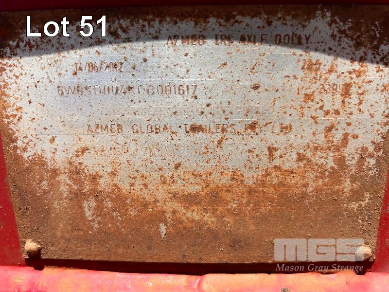 2012 AZMEB TRIAXLE DOLLY VIN / CHASSIS: 6W9SD004KCB001617 BPW AXLES, FULL AIR SUSPENSION, R/T RATED, 50MM FIXED TURNTABLE