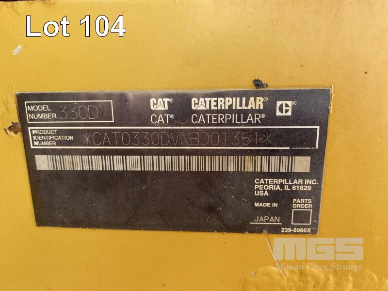 2008 CATERPILLAR 330DL EXCAVATOR A/C ROPS CAB, S/NO: NBD01351 HOUR: 17,764 UNIT NO: 502 1400mm GP BUCKET FIRE SUPPRESSION MAINTENANCE HISTORY AVAILABLE