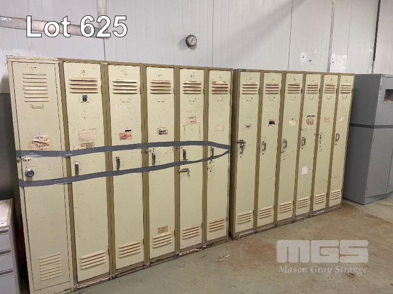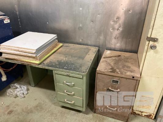 DESK, 3 x 2 DOOR STOCK , 2 x FILING CABINETS, 17 LOCKERS