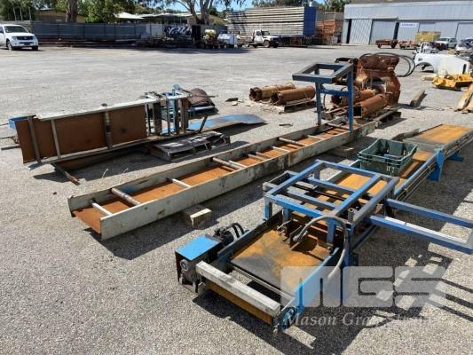 BELT CONVEYOR, 4 SECTIONS, 4600 x 500mm, 2200 x 500mm, 1400 x 500mm & 900 x 500mm HYDRAULIC DRIVE MOTOR, WINGED MIDDLE SECTION FOR ANGLE ADJUSTMENT