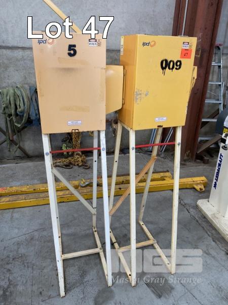 2 x SITE CONTROLLER BOXES, 240V, 15 & 10A, 11 x SOCKETS ON STANDS