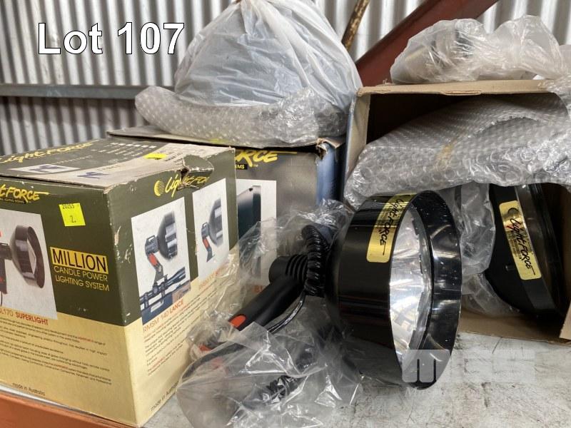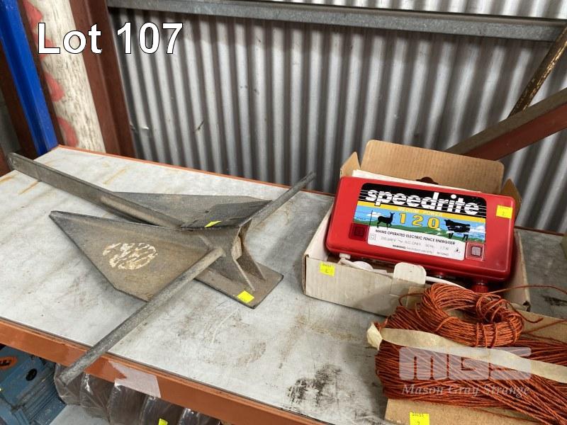 SPOT LIGHTS, LIGHTFORCE, 2 x MOUNTABLE & 1 x HAND HELD, 1 x 7.5m JUMPER LEAD SET, SPEEDRITE ELECTRIC FENCE, 240V, 1.7w & WIRE WITH GALV BOAT ANCHOR, BLUE LINE