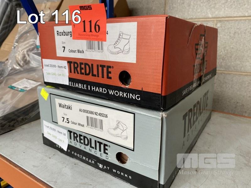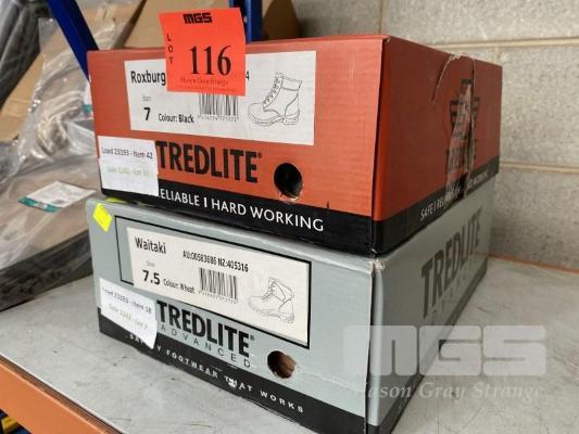 2 x PAIRS BOOTS, TREDLITE, ROXBURG, SIZE 7 BLACK & EATAKI SIZE 7.5, WHEAT, STEEL CAP, NEW