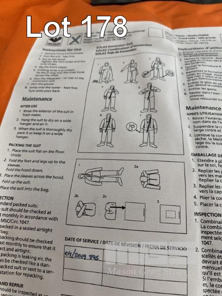 2 x VIKING SOLAS IMMERSION SUITS MOD: PS2004 DOM: 2016 SIZE: UNIVERSAL HEIGHT: 140-200cm WEIGHT: 50-100kg HIGH VISIBILITY YELLOW REFLECTIVE TAPE FOR HIGH VISIBILITY IN THE DARK THERMAL PROTECTION IN COLD WINTER IN CARRY BAG