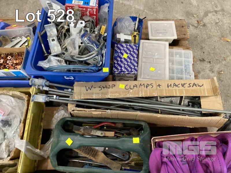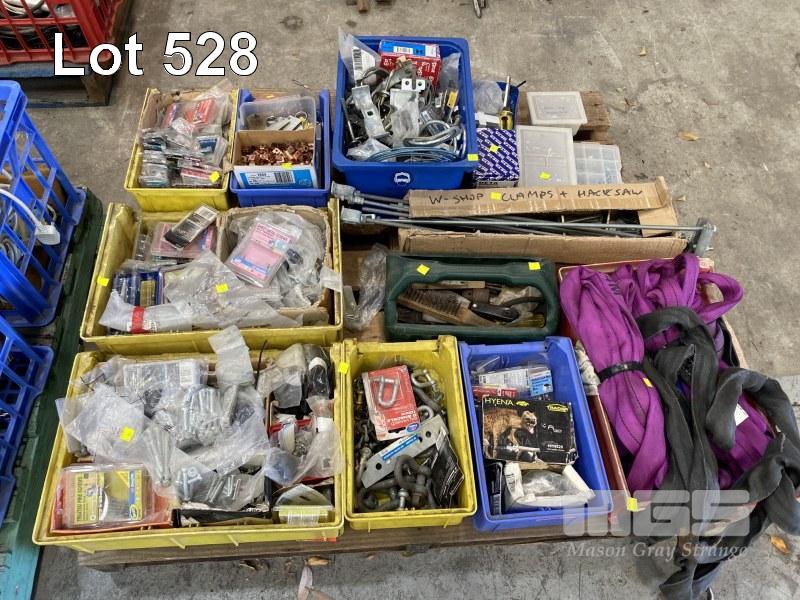 QUANTITY FASTENERS, LIFTING SLINGS, TOOLS, CLAMPS, FITTINGS, D-SHACKLES, ETC,