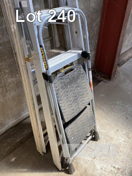 2 x ALLOY A-FRAME LADDERS, 1830, 2100mm & STEP LADDER, GORILLA, 1200mm