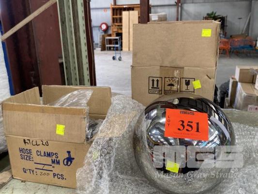 STAINLESS STEEL REFLECTIVE DISPLAY BALL, 200mm & 1 x BOX (200) NOSE CLAMPS, 1"