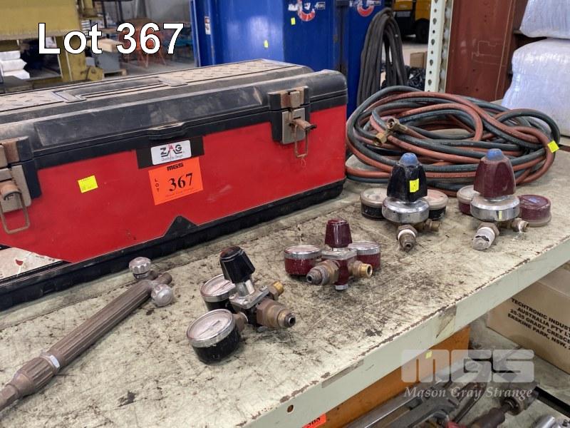OXY ACETYLENE WELDING KIT INC 2 x HOSES, 3 x TORCHES, 5 x REGS INC ARGON & TOOL BOX ZAG, 26" METAL