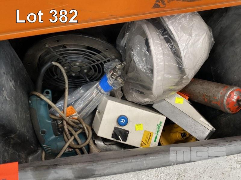 MAKITA HAMMER DRILL, GMS HEDGE TRIMMER, GREASE GUN, SWITCHES, VACUUM CLEANER, JERRY CAN, ETC