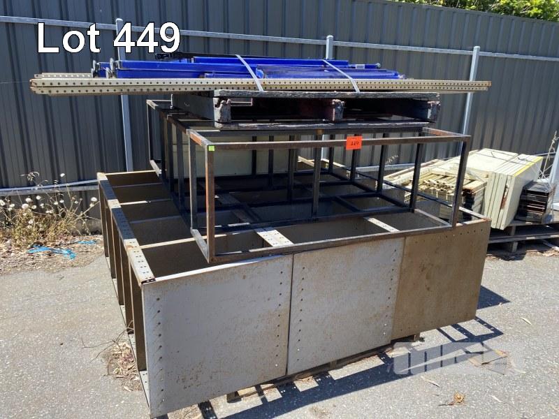 2 x STEEL SHELF UNITS, ASSORTED SIZES & PALLET OF BROWNBUILT COMPONENTS