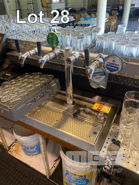 COMPLETE BEER DISPENSING UNIT COMPRISING OF FLOJET BEER PUMP, MODEL: H5610000, SERIAL: 16K498336, CODE: G561202G LANCER GLYCOL SYSTEM CHILLER, SERBIAN MODEL: 518412 SERIAL: 45542 240v 7 x BEER TAPS & DRIP TRAYS (LOCATED IN UPSTAIRS BAR) INCLUDES ALL PLUMBING & BEER LINES (NO KEGS) PLUS MULLER COOL ROOM COMPRESSOR MODEL:MLS-230 SERIAL: 10 240v (BUYER TO REMOVE)